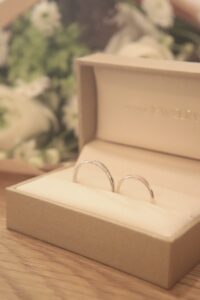 シンプルだけれどデザイン性を持たせた結婚指輪。